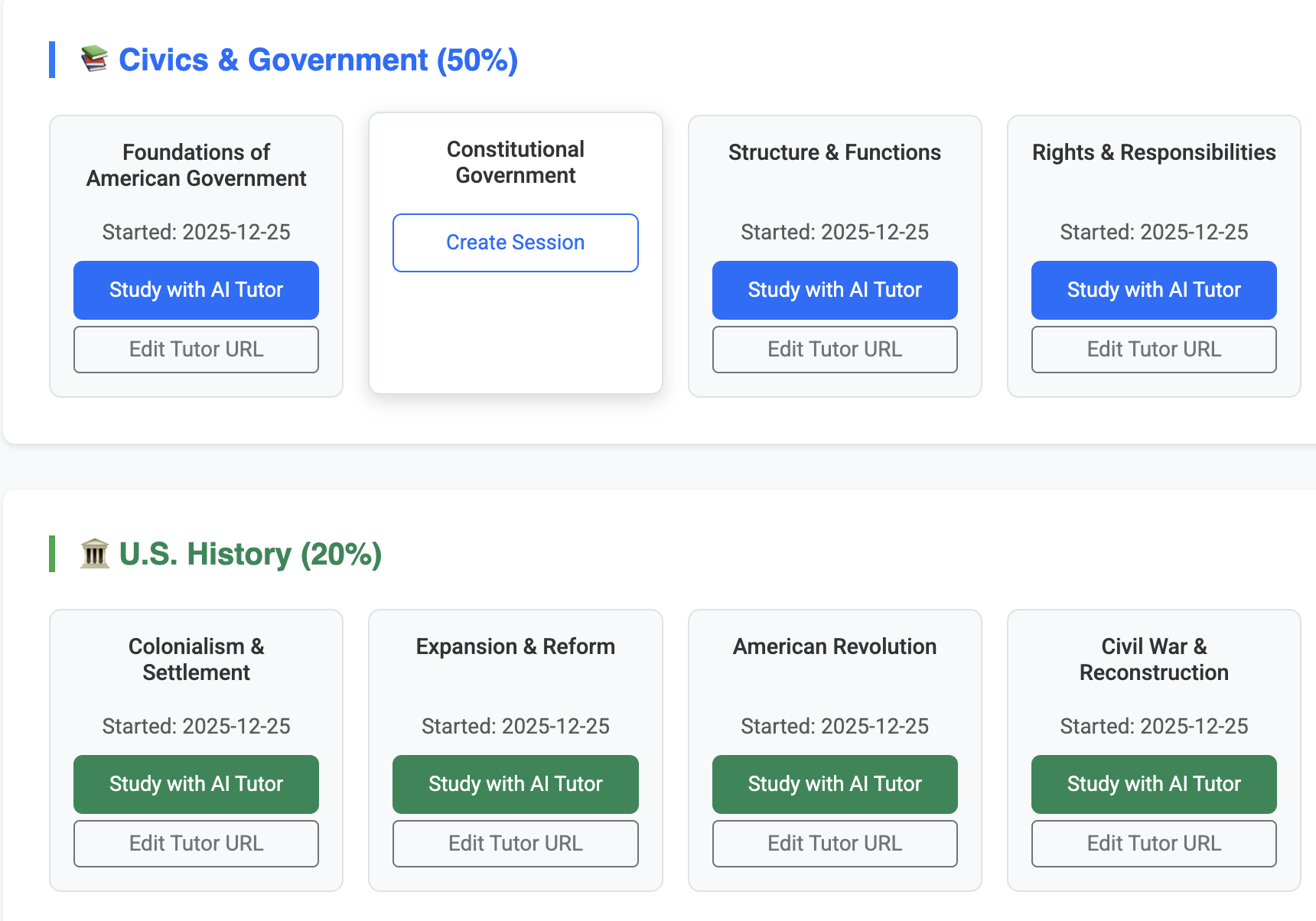 Instead of generic AI chats, each tutor is specialized for specific topics like "Constitutional Government" or "Supply & Demand" - ensuring focused, relevant discussions.